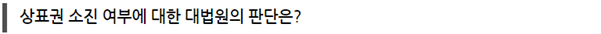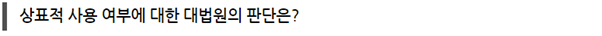 또한 대법원은 상표로서 사용되고 있는지, 즉, 상표적 사용에 해당하는지 여부를 판단하기 위해서는, 상품과의 관계, 당해 표장의 사용 태양, 등록상표의 주지저명성 그리고 사용자의 의도와 사용경위 등을 종합하여 실제 거래계에서 그 표시된 표장이 상품의 식별표지로서 사용되고 있는지를 종합하여 판단하여야 한다고 판단기준을 제시하고 있습니다(대법원 2013. 1. 24. 선고 2011다18802 판결 등).