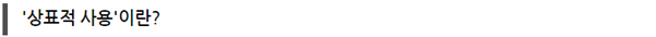 따라서 제3자가 상표법상 규정된 형식적인 상표 사용 행위를 했더라도, 그것이 실질적으로 상품의 출처를 표시하기 위한 '상표로서 사용'되지 않았다면 상표권 침해로 평가할 수 없으며, 이와 같은 ‘상표로서의 사용’을 ‘상표적 사용’이라고도 합니다.