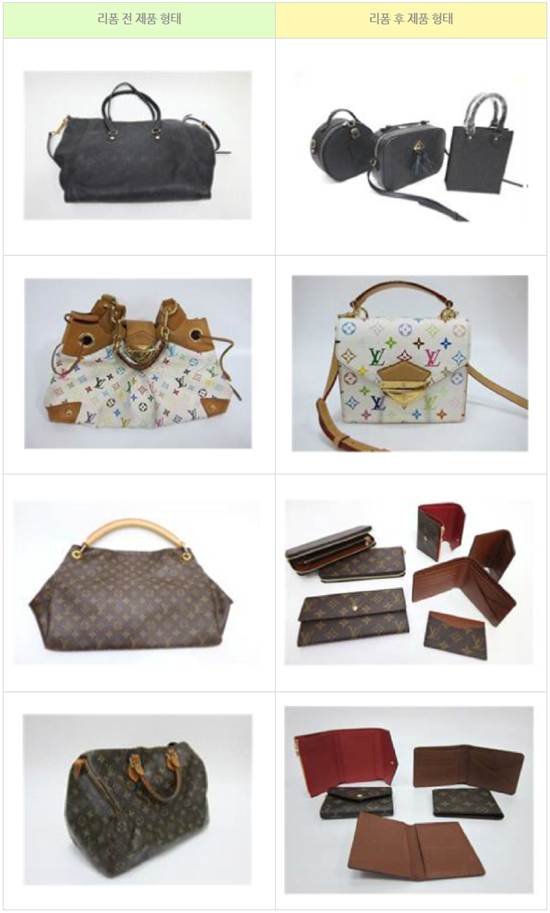 한편, 이 사건의 피고는 가방, 지갑 등을 전문적으로 수선하는 업자로, 고객의 의뢰를 받아 고객이 소유한 루이비통 가방의 원단을 이용하여 아래와 같이 원래 제품과 전혀 다른 디자인의 가방이나 지갑을 제작하여 고객에게 돌려주었습니다.