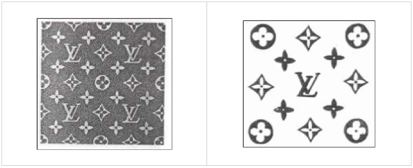 이 사건의 원고는, 모르는 사람이 없다고 해도 과언이 아닐 정도로 저명한 명품 브랜드인 ‘루이비통’입니다. 특히 아래와 같은 루이비통 특유의 문양은, 이 문양이 제품 전체에 반복적으로 표시된 가방을 길거리에서 3초마다 볼 수 있다고 하여 ‘3초백’이라고 불릴 정도로 널리 알려져 있습니다. 루이비통은 아래 문양에 대한 상표권을 보유하고 있습니다.